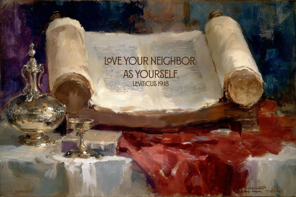 And the second is like it: ‘Love your neighbor as yourself.’ [Quoting Leviticus 19:18] All the Law and the Prophets hang on these two commandments.” Matthew 22:37-39