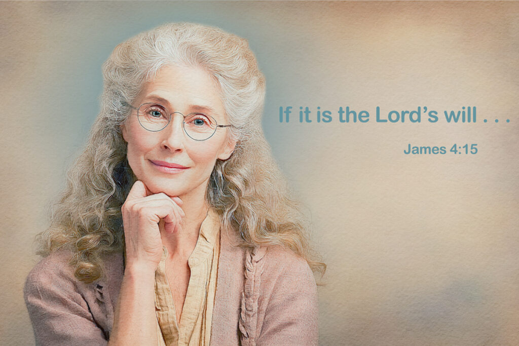 Career lady of faith: “Lord, you know the goals I’d like to meet. I made a graph for each quarter with my profit goal. I have three marketing campaigns all ready to spin into action. I’ve made a contact list, paid my dues for networking groups, and I’m gonna rock it this year! But only if you bless me, guide me, and strengthen me. I’m trusting for your will in my career. I don’t know what tomorrow will bring. I have limited resources of knowledge, strength, and control. My plans are always subject to your plan. You are in charge. You control. I cooperate with you.”